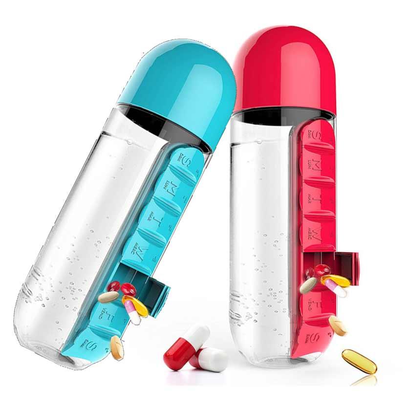 Сама по себе таблетница на 7 дней – очень полезная, хоть и простая вещь. Она незаменима для тех, кто регулярно принимает лекарства, витамины или добавки. А в сочетании с бутылкой таблетница становится еще более надежным и удобным помощником. Каждый раз, когда вы будете отпивать из бутылки, невольно придется вспомнить про прием медикаментов. Шансы пропустить его стремятся к нулю.