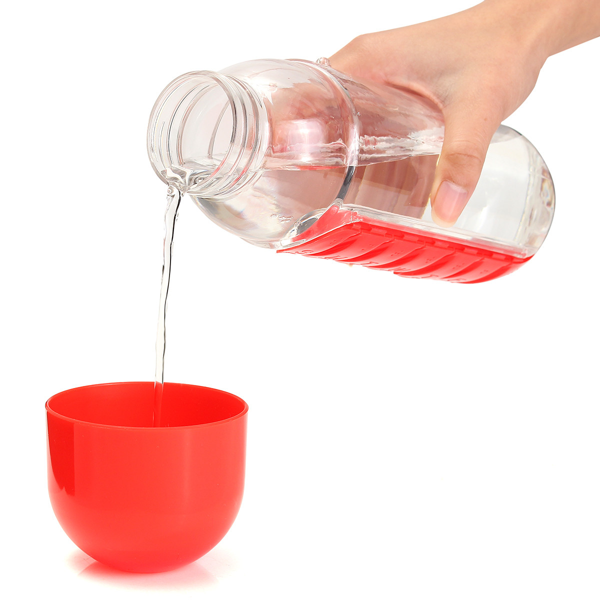 Бутылка изготовлена из прочного пластика, она подходит для горячих и холодных напитков. Главное помнить, что не все медикаменты останутся в норме, если будут соседствовать с горячим чаем или какао. Можно смело брать бутылку для воды с таблетницей на природу, объемная крышка в походных условиях вполне способна заменить кружку.