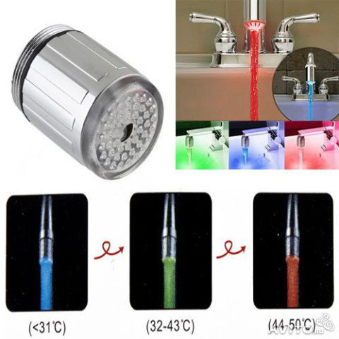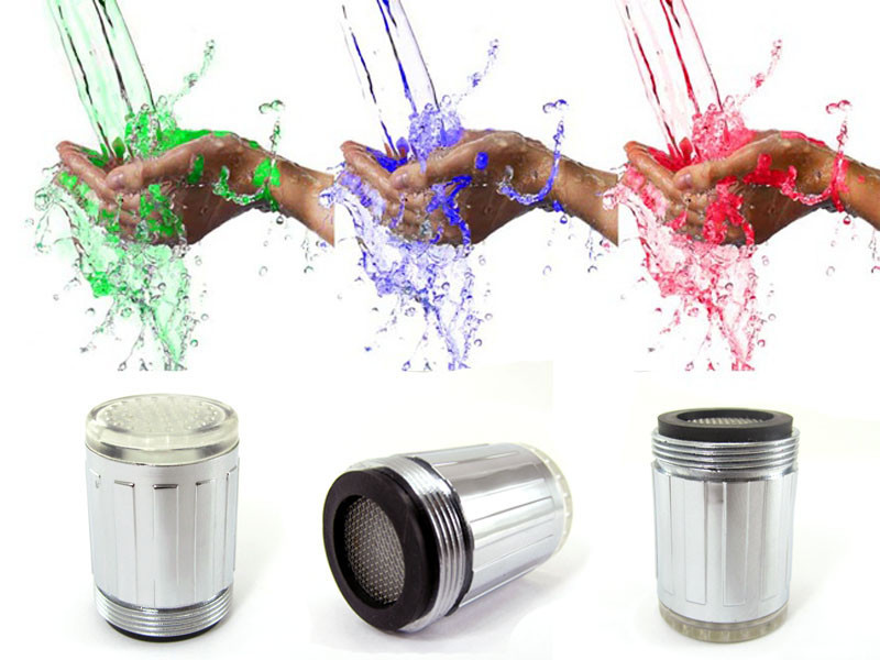Свет, который излучает вода из смесителя, создает уютную атмосферу. Простое мытье рук превратиться в удовольствие благодаря струе воды голубого, зеленого или красного цветов, в зависимости от температуры воды.