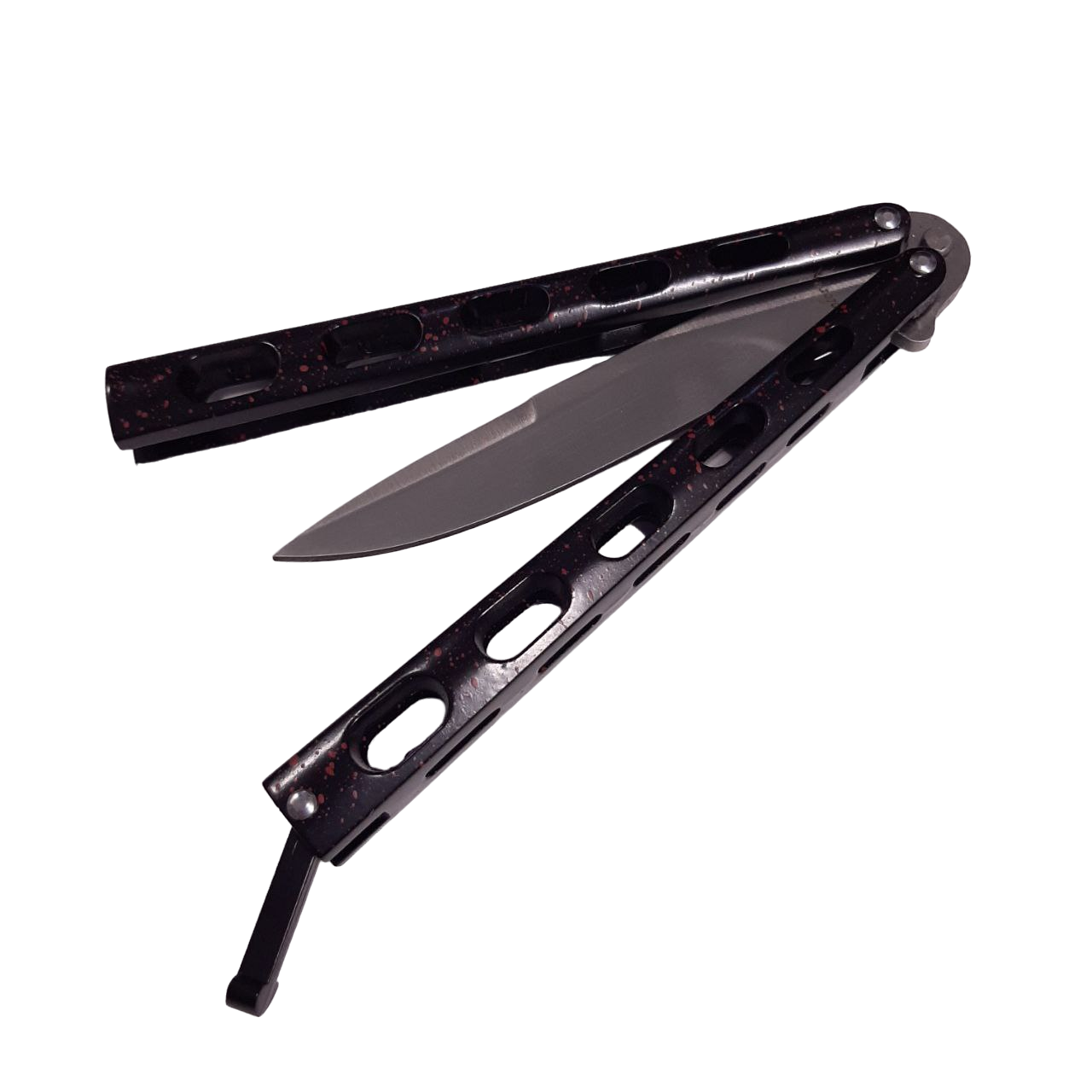 Нож-бабочка (балисонг) "Gasoline", компактный и надежный инструмент. В сложенном виде лезвие скрыто в корпусе, который образовывают две продольные раздвижные пластины на шарнирах. В рабочее состояние балисонг приводится в считанные секунды резкими движениями руки. При раскрытии металлические пластины-рукояти обнажают клинок, расходясь на 180 градусов. Сверкая в умелых руках, разноцветный нож-бабочка способен произвести обескураживающее действие. Но искусство обращения с таким ножом требует особой сноровки и длительных тренировок. Если при сильном желании освоить флиппинг, вы готовы проявить настойчивость, смело заказывайте цветной балисонг.