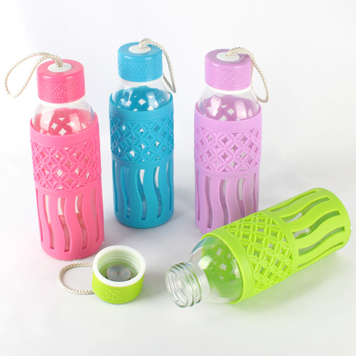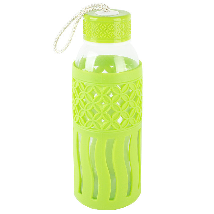 Бутылка для воды 400мл. Бутылка для воды изготовлена из стекла с пластиковым дизайном. Цвета в ассортименте.Размер : 7*24,5*7см