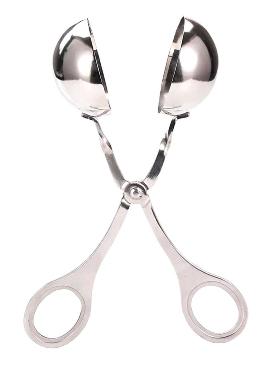 Удобные щипцы для формирования котлеток и шариков из мяса. Длинный держатель в форме ножниц облегчает точный набор и формовку мясного фарша. Два отверстия в форме позволяют выбраться избыткам мяса во время обжима. Быстрый и простой способ приготовления вкусных фрикаделек или пельменей.