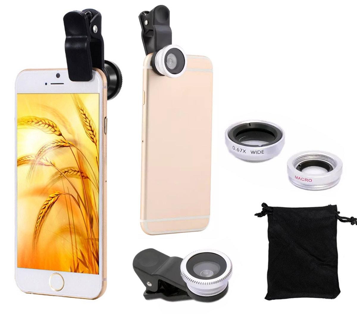 Набор из 3 объективов для смартфонов и планшетов, оснащенных встроенной камерой. Каждый из объективов позволяет получить различный эффект искажения изображения, что позволяет легко снимать фантастические фотографии! Просто установите один из нужных объективов на глаз камеры вашего телефона с помощью прилагаемого зажима! Затем мы запускаем приложение камеры на устройстве, и все готово!