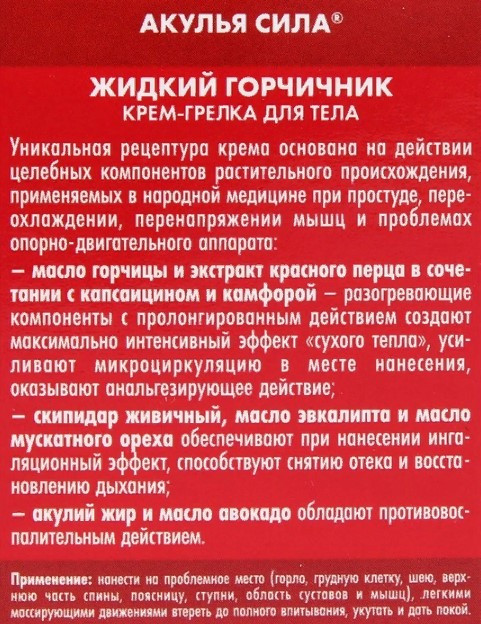 Крем-грелка для тела Акулья сила "Жидкий Горчичник "