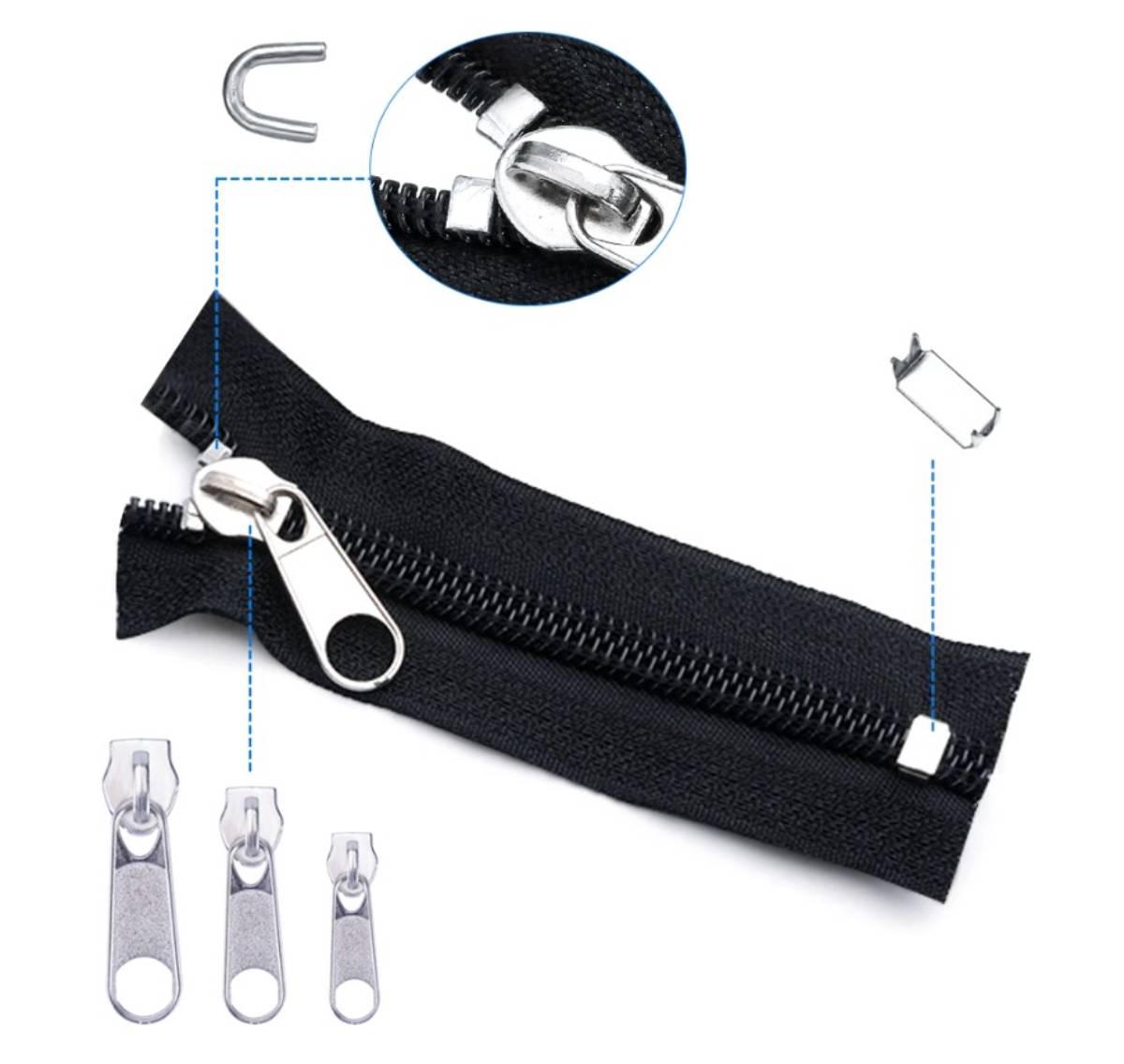 Комплект для ремонта молнии включает в себя различные размеры ползунков молнии, во многих размерах для ремонта одежды,
