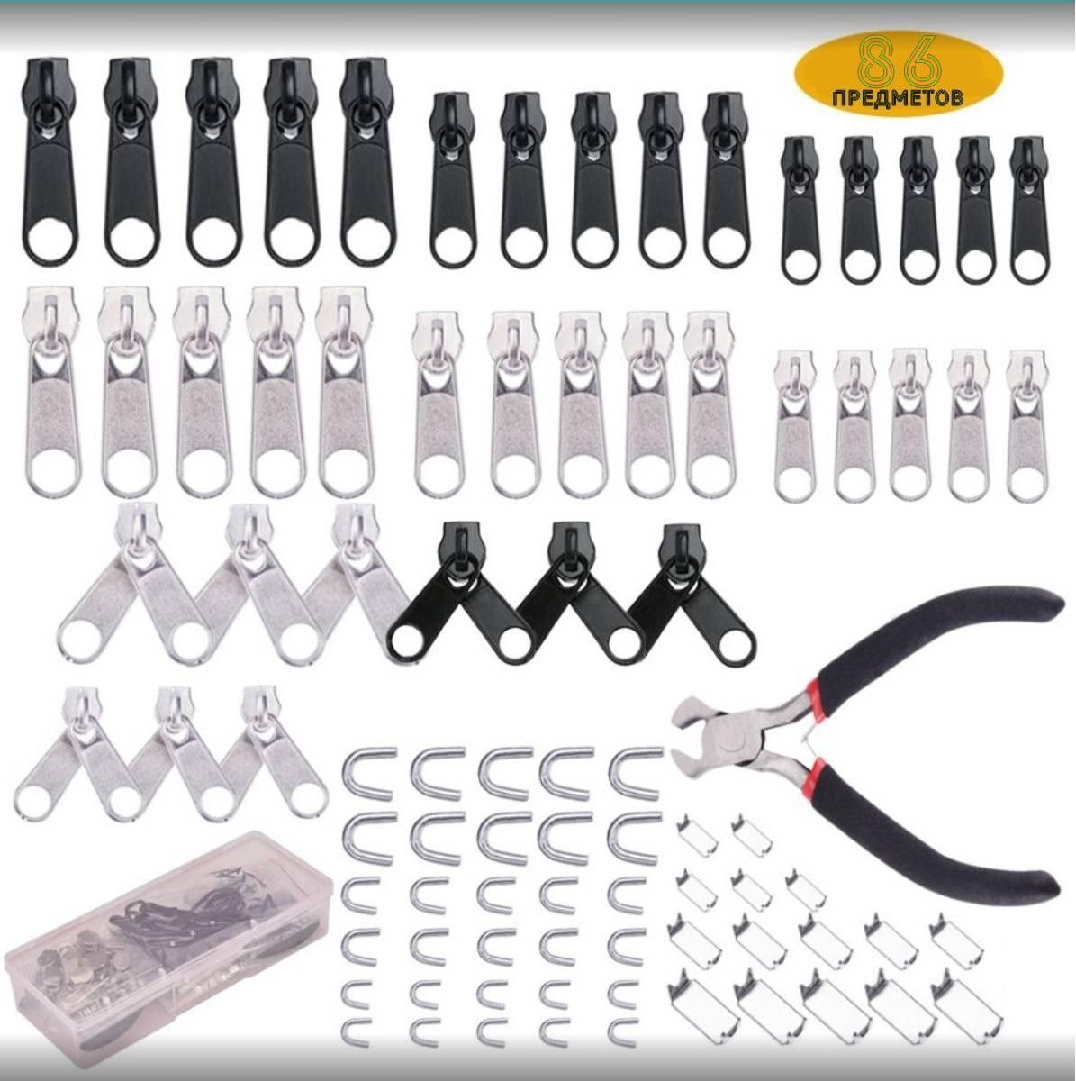 Набор для быстрого ремонта замков-молний 85 предметов + пластиковая коробка для хранения