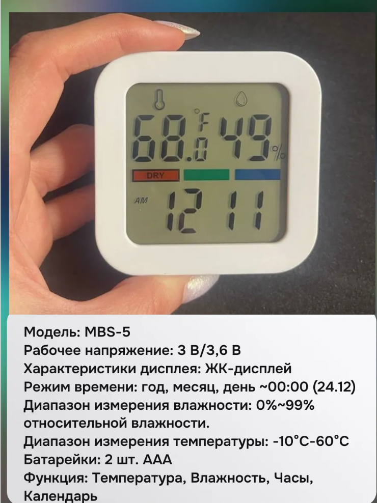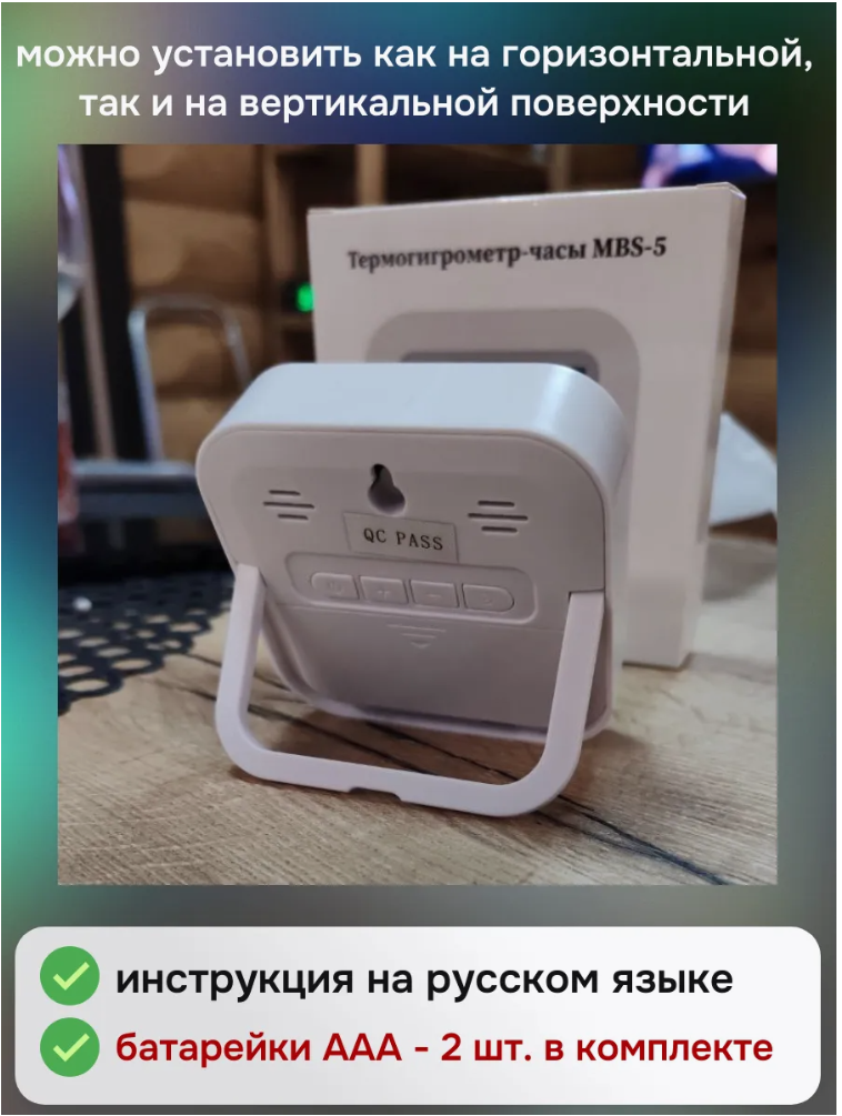 Датчик температуры и влажности встроенный и беспроводной. Термометр гигрометр-часы MBS-5 работает как Измеритель влажности воздуха и термометр комнатный.