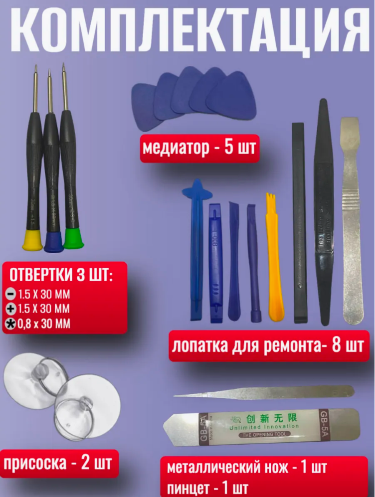 Содержит все необходимые инструменты, чтобы легко и безопасно разобрать и собрать любую модель телефона.