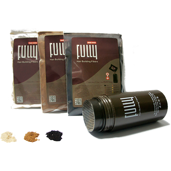 FULLY hair building fibers (кератиновое восстановление структуры волос) представляет собой уникальный комплекс из 100% чистого белка органического кератина. FULLY HAIR известен как камуфляж, загуститель или пудра для волос. Микроскопические волокна FULLY HAIR опираются на существующие волосы, увеличивая плотность и объем волос в местах облысения. Применять FULLY HAIR очень просто — удерживая баллончик над местом облысения, встряхните его, и в течение нескольких секунд тысячи цветовых волокон переплетутся с существующими волосами, придав вашим волосам пышность и объем.